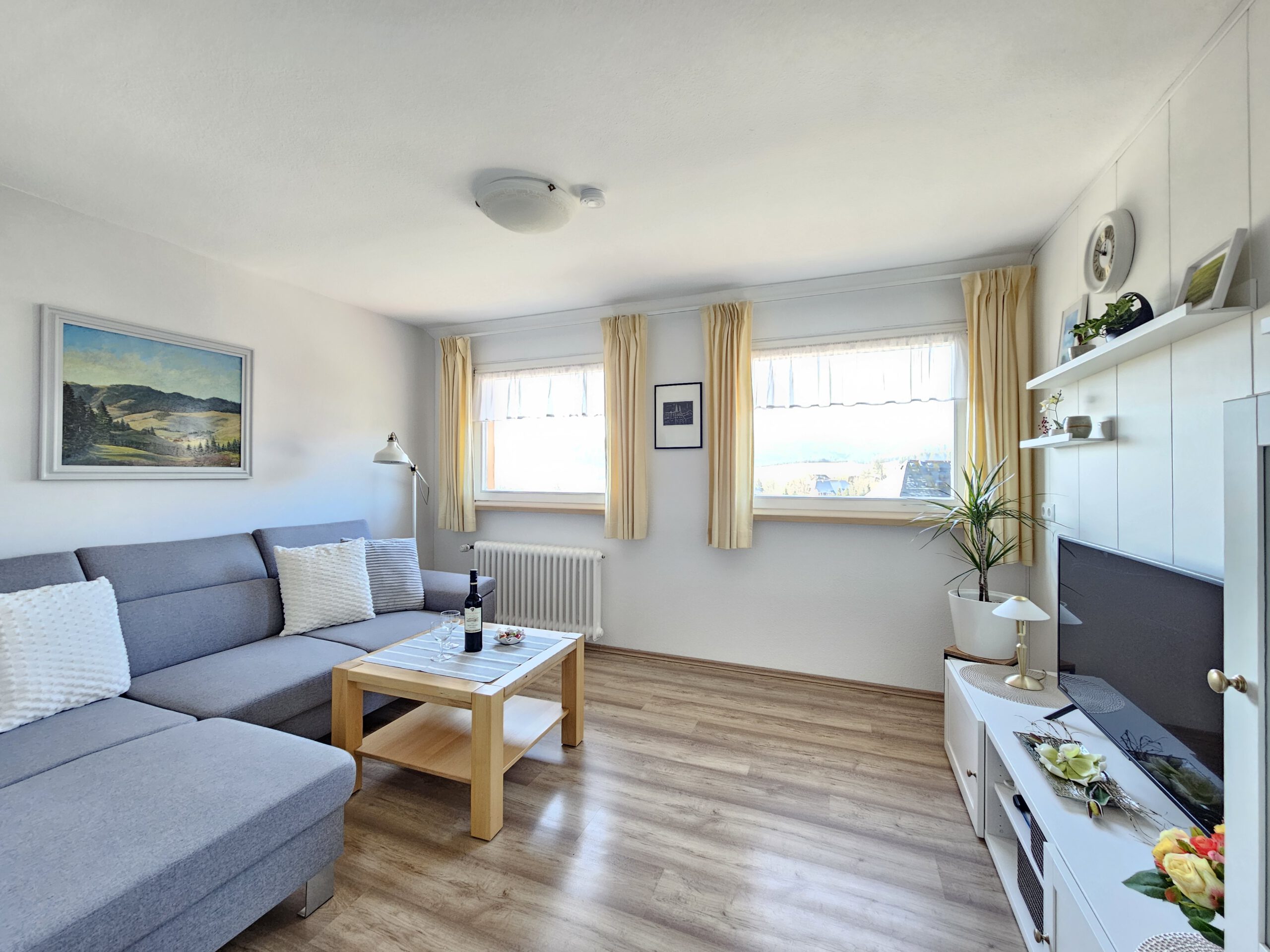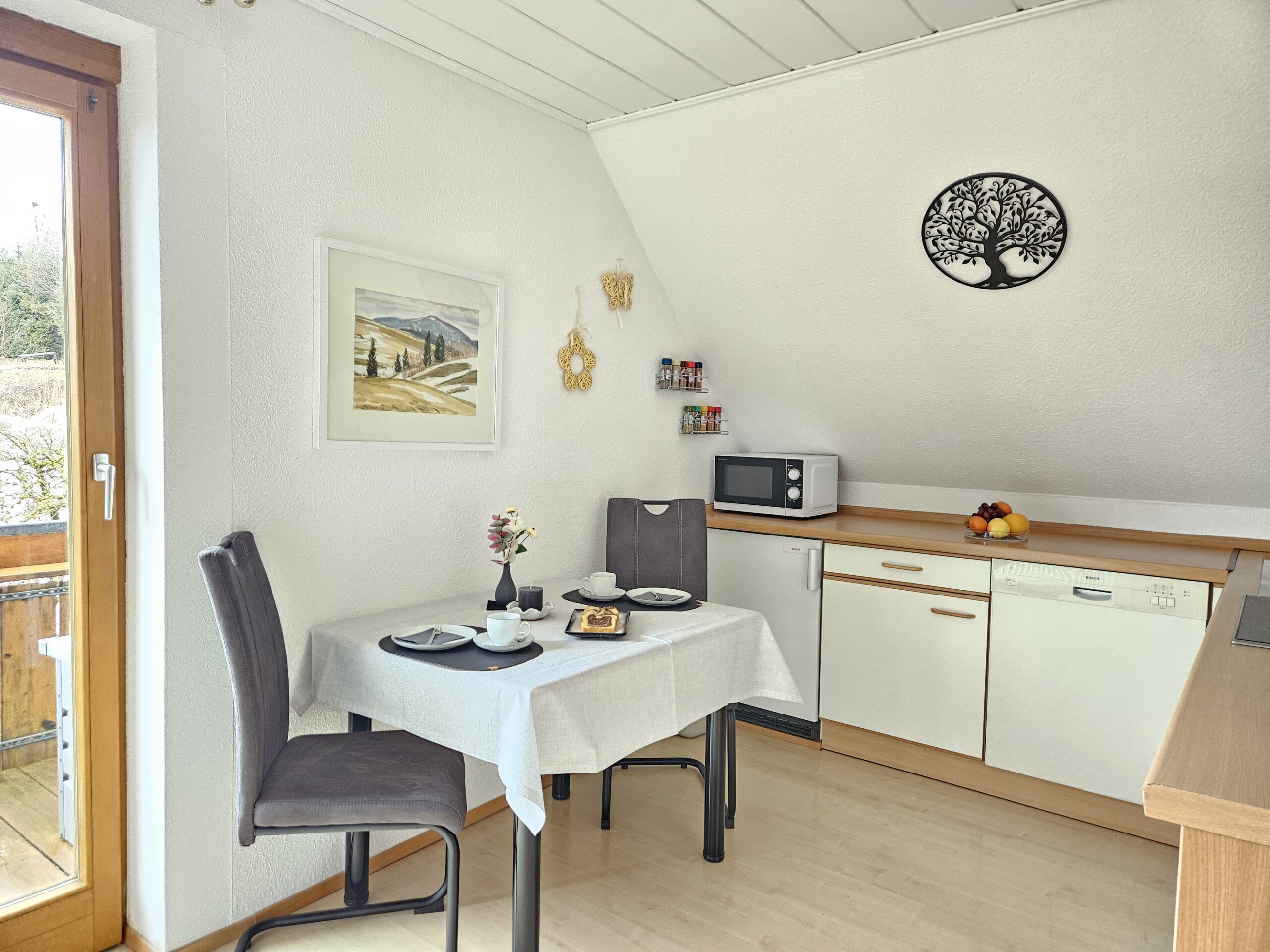 Unsere liebevoll und stilvoll eingerichtete Nichtraucher-Ferienwohnung ist komplett ausgestattet – damit es Ihnen an nichts fehlt. Hier können Sie einfach ankommen, durchatmen und den Alltag hinter sich lassen.